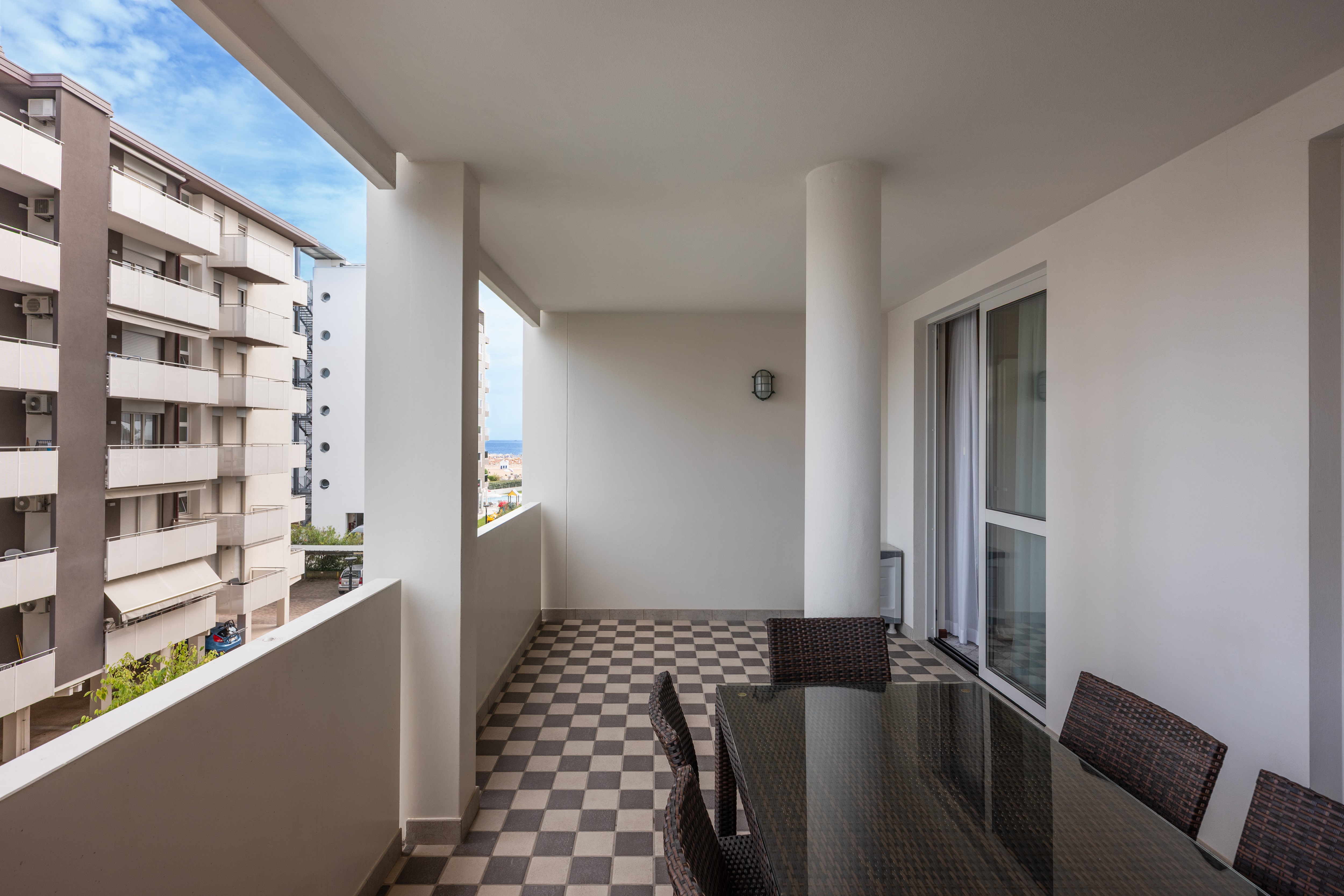 - Ampio terrazzo coperto arredato con vista mare laterale